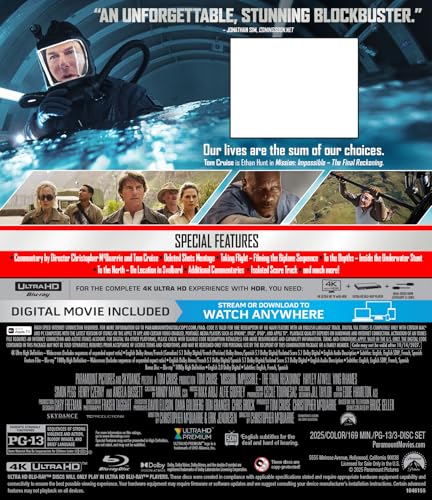 Details: Our lives are the sum of our choices. Tom Cruise is Ethan Hunt in Mission: Impossible – The Final Reckoning.