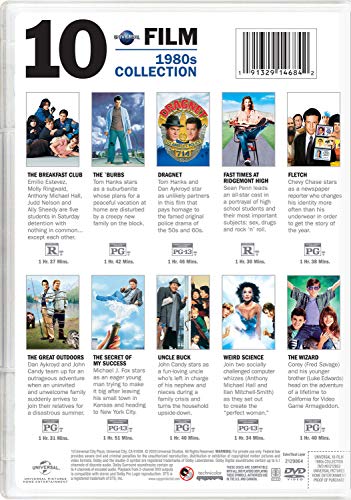 Details: The Universal 10-Film 1980s Collection includes The Breakfast Club, The 'Burbs, Dragnet, Fast Times at Ridgemont High, Fletch, The Great Outdoors, The Secret of My Success, Uncle Buck, Weird Science and The Wizard. Starring Emilio Estevez, Molly Ringwald, Tom Hanks, Dan Aykroyd, Sean Penn, Chevy Chase, John Candy, Michael J. Fox and Fred Savage.